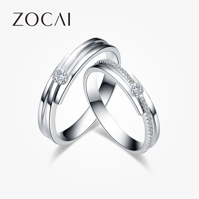 佐卡伊 邂逅 白18k金情侣对戒婚戒结婚戒指一对钻戒订婚男女戒