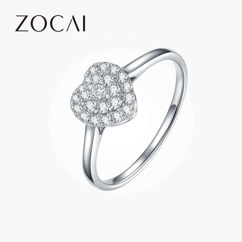 佐卡伊 白18k金时尚心形轻奢群镶钻石戒指女正品显钻求婚结婚钻戒