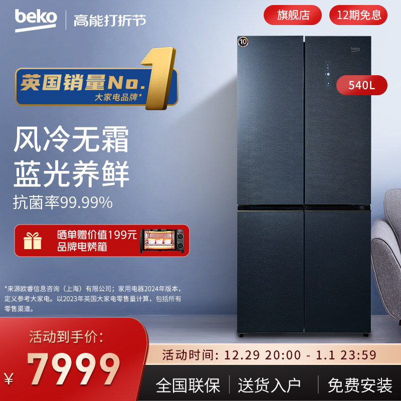 BEKO/倍科540升变频风冷无霜十字对开门多门家用电冰箱GNE0540BG