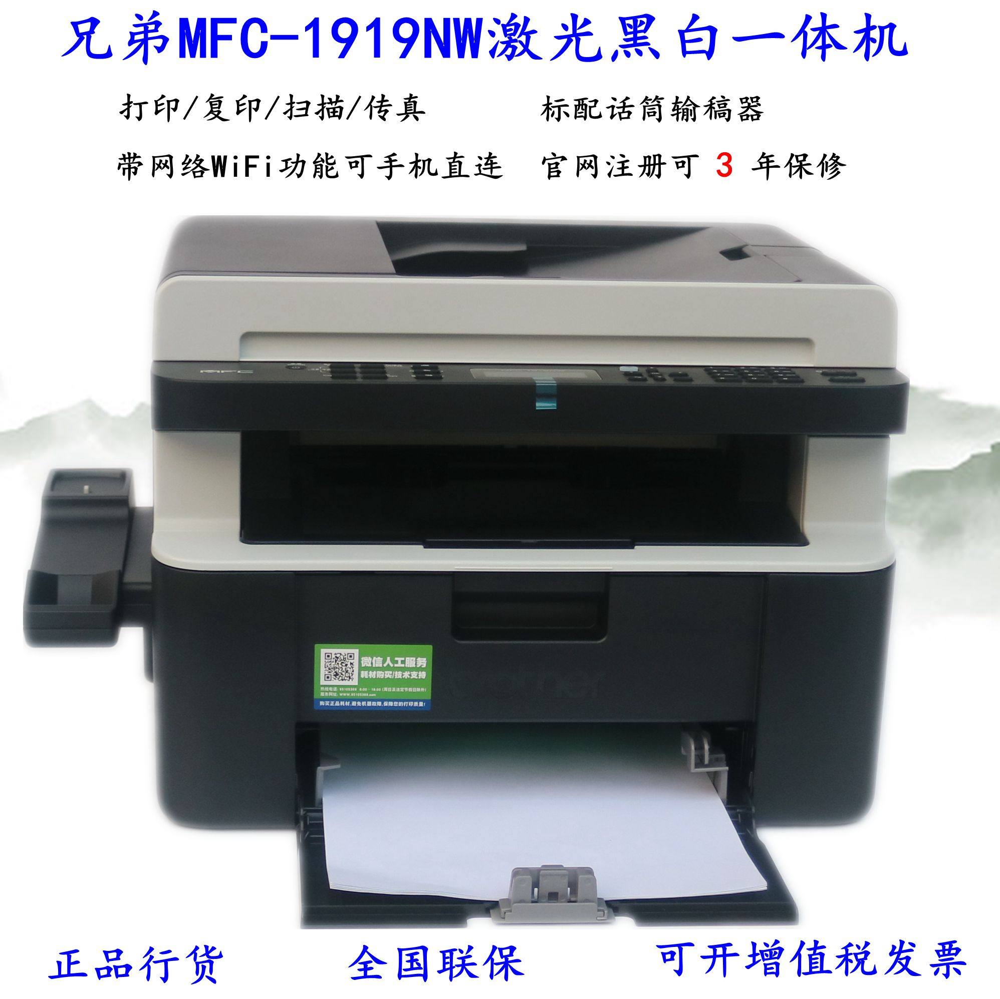 兄弟MFC-1919NW黑白激光打印机扫描复印一体机办公专用家用小型手机无线远程复印机传真办公室商用多功能
