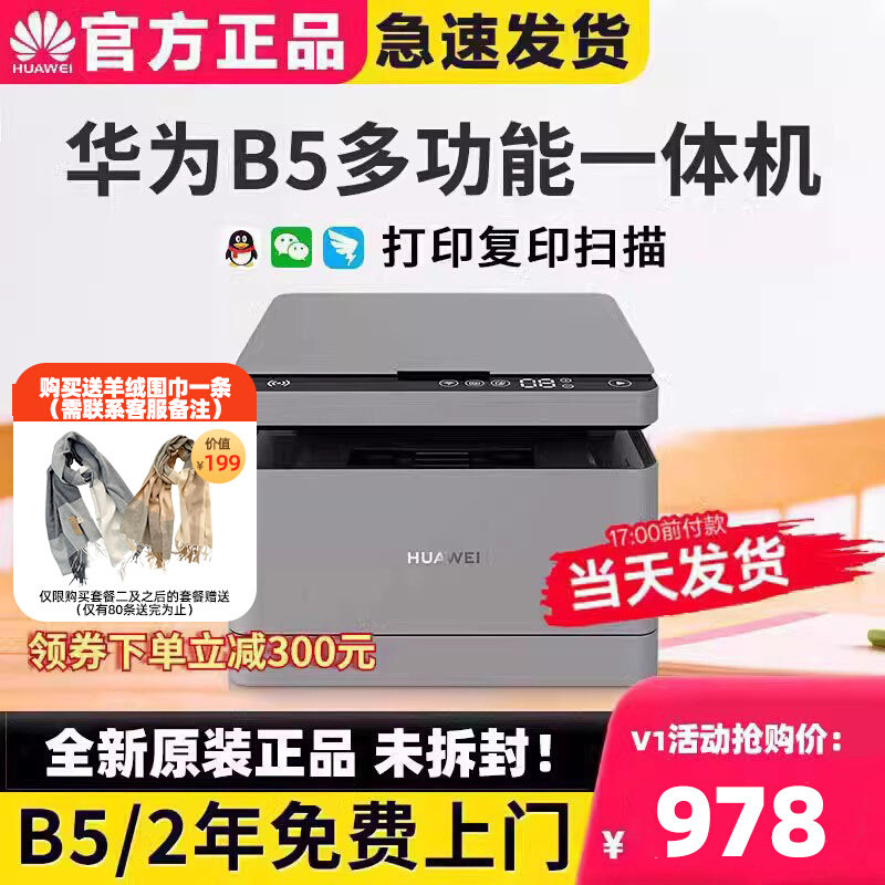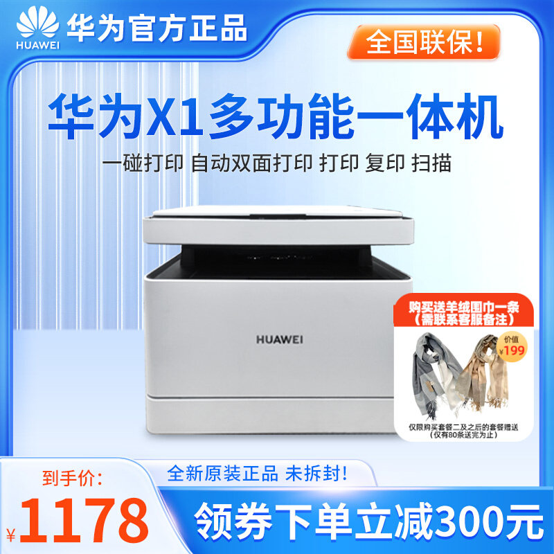 华为黑白激光打印机PixLab X1/B5新款自动双面无线复印一体机V1