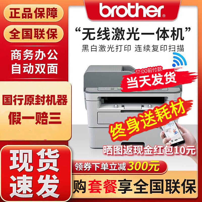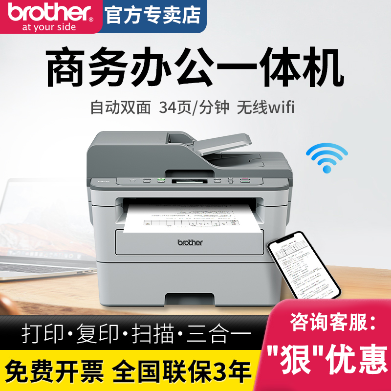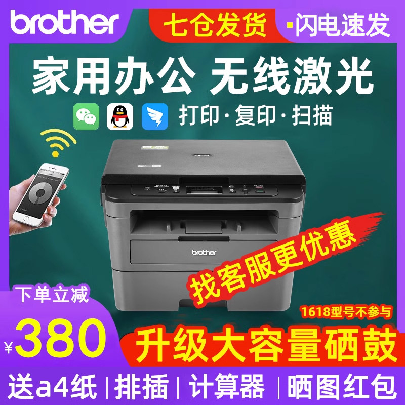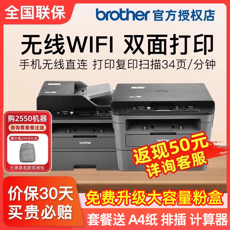 兄弟激光打印机复印一体机扫描办公专用家用小型无线蓝牙商用学生wifi黑白自动双面多功能1618/L2535/2550DW