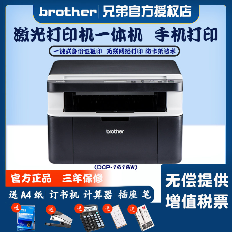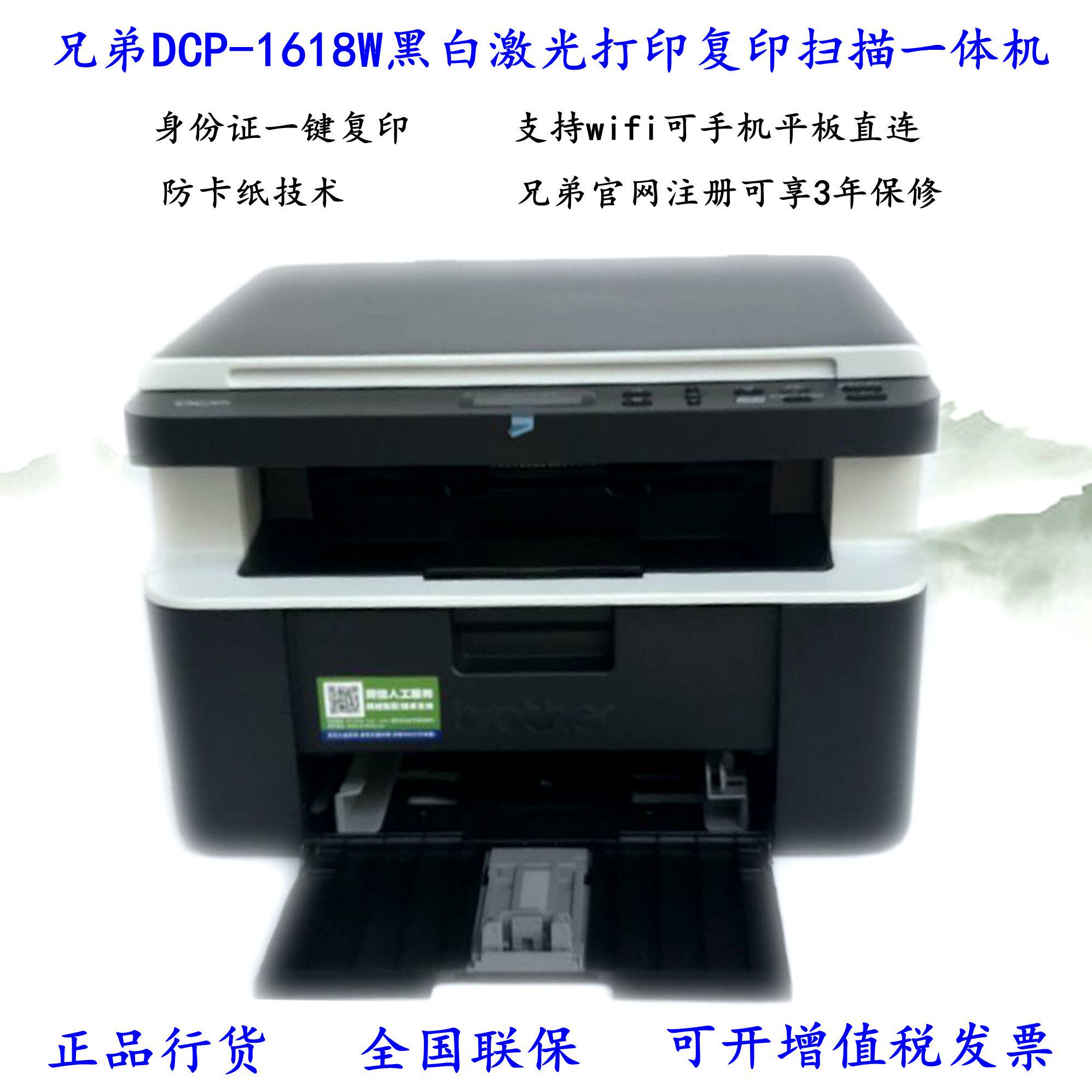 brother兄弟DCP-1618W打印机 A4黑白激光一体机 手机无线wifi网络打印 复印扫描 家用办公小型学生作业试卷