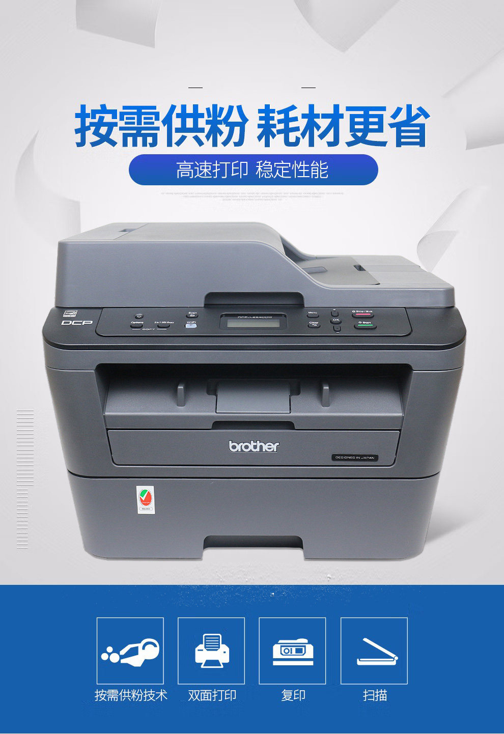 兄弟DCP-B7520DW激光打印机复印机扫描一体机无线网络自动双面打印办公室商务家用DCP-B7530DN/B7535DW/7500D