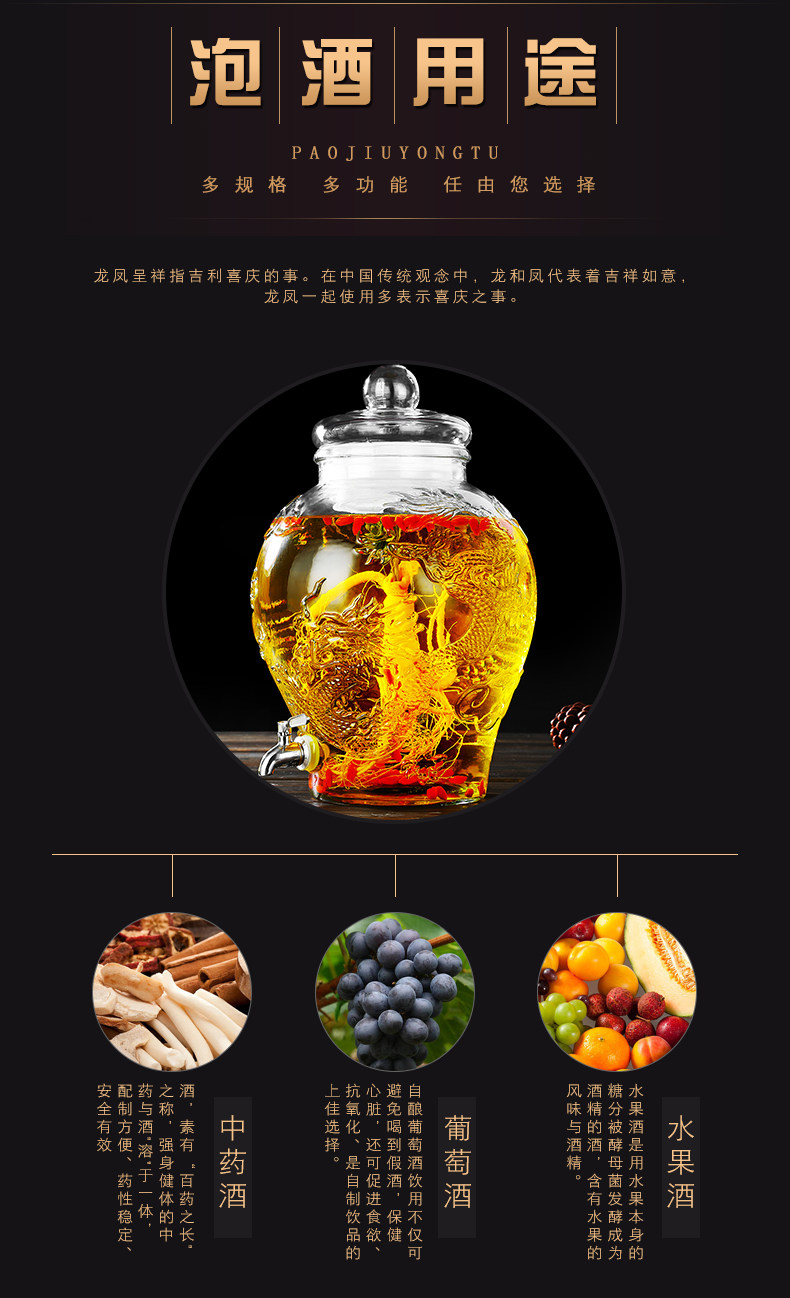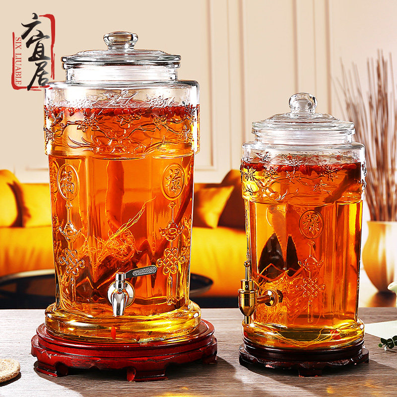 六宜居泡酒玻璃瓶10斤带龙头密封泡酒罐家用泡酒专用酒瓶酿酒坛子