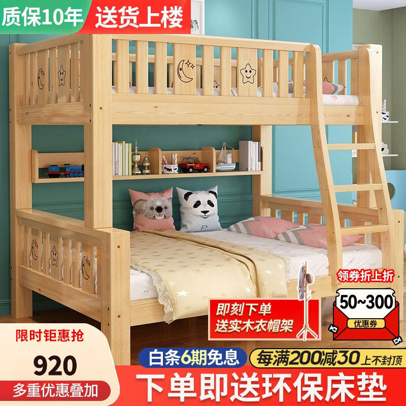十亿客儿童上下床实木床两层床高低床松木床上下铺多功能床无漆直
