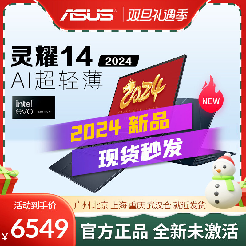 华硕灵耀14 2024英特尔酷睿ultra7超轻薄网课商务办公笔记本电脑