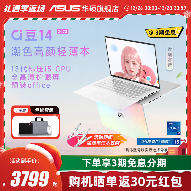 【颜值爆款】华硕a豆14 13代酷睿i5笔记本电脑14英寸高颜值轻薄学生办公本女生商务笔记本华硕旗舰店