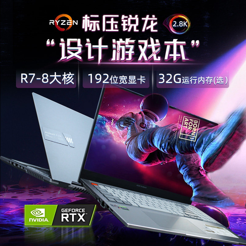 2023新款ASUS华硕设计游戏本英特尔i7标压独立显卡RTX3050/4060三维CAD修图剪视频电竞3A大作笔记本电脑