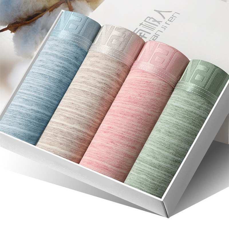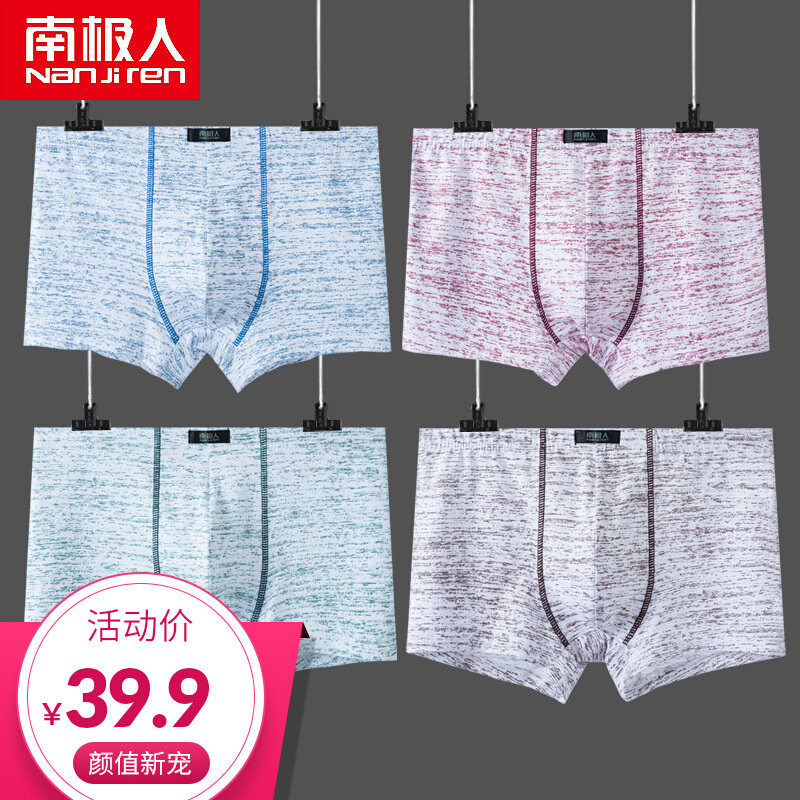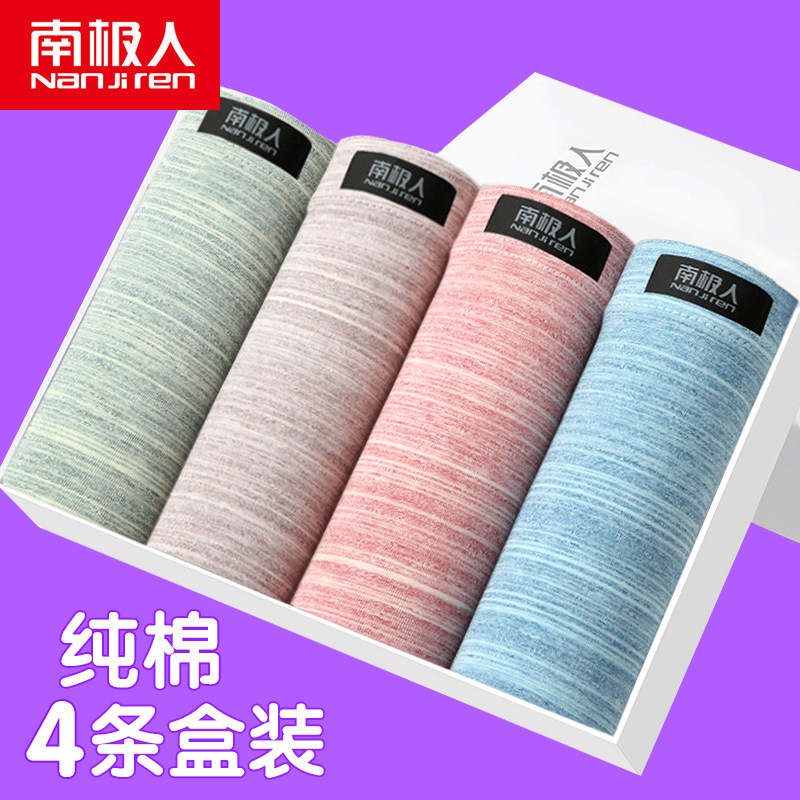 新品正品南极人彩棉内裤礼盒内裤平角直销4条装肥佬裤盒装