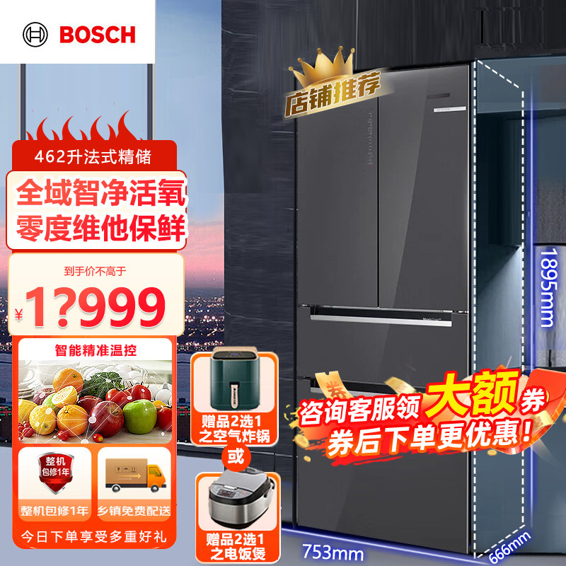 Bosch/博世 BCD-462W(KFF72AA50C)全域智净活氧除菌462升多门冰箱
