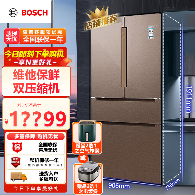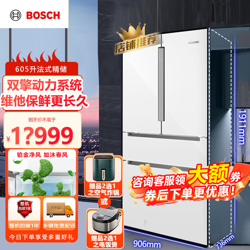 Bosch/博世 KFF98AA26C大容量风冷无霜双循环双压缩机变频冰箱605