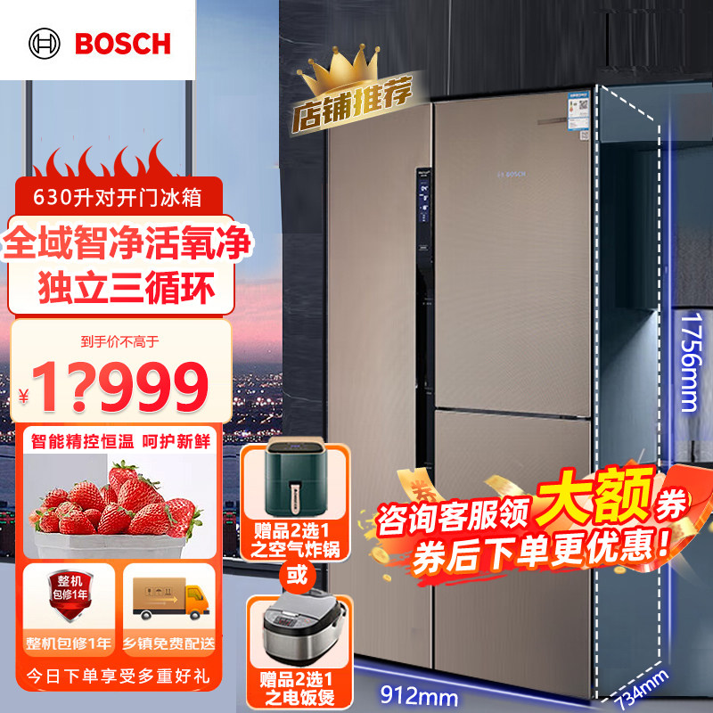 Bosch/博世 KAN98VA21C全域智净·活氧净630升家用变频对开门冰箱
