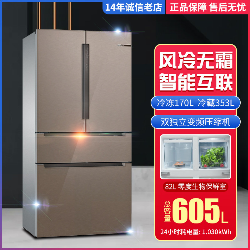 博世冰箱605L双压缩机四开门一级能效节能冰箱维他保鲜KFF98AA63C