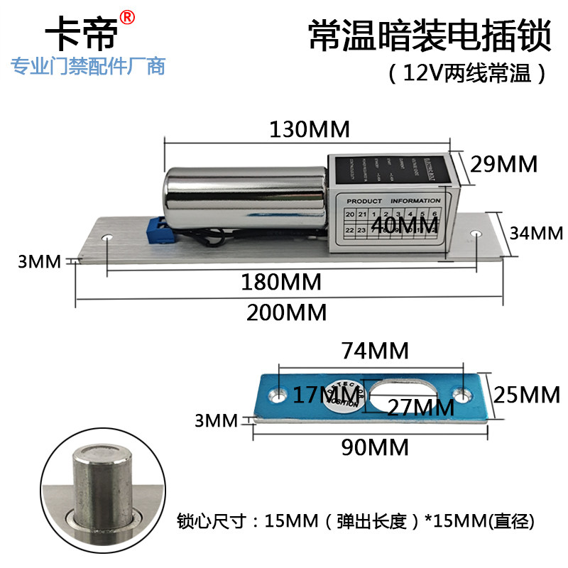 温低暗装明门禁无框窄版插销锁博克时常温延电插锁玻璃门线五线两