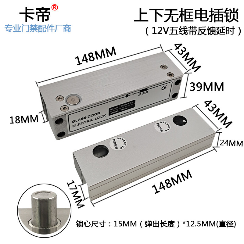 门禁玻璃门电插锁常温低温无框窄版明暗装两线五线延时插销锁博克
