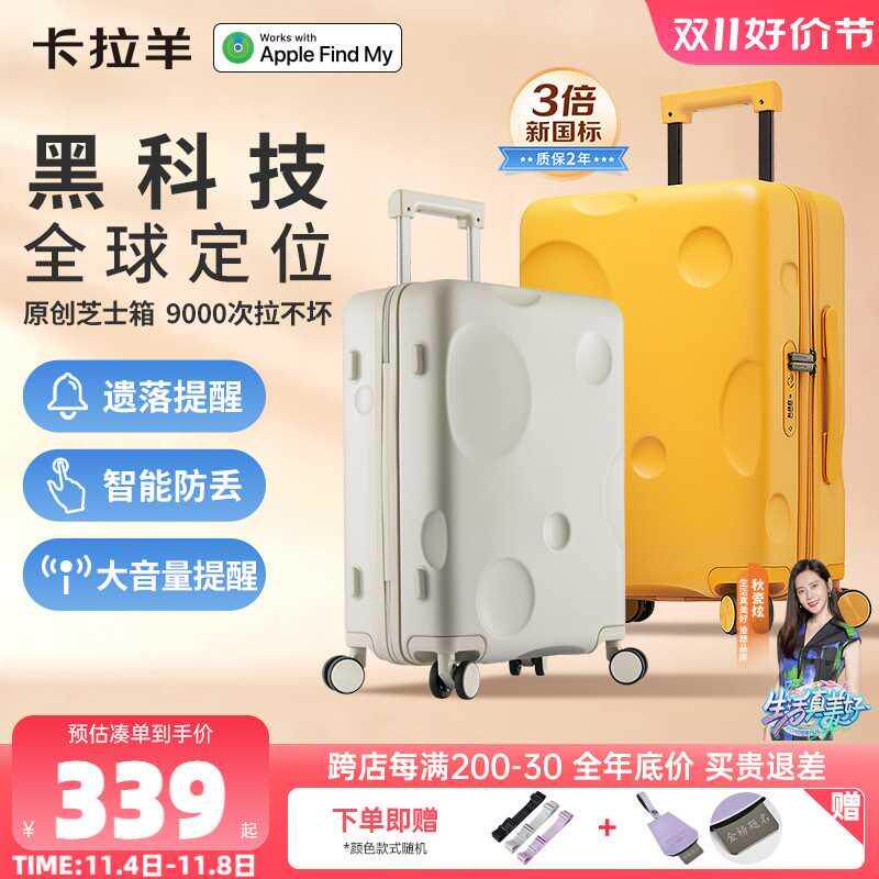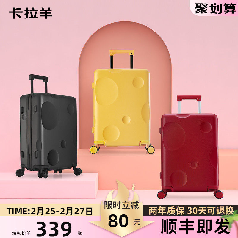 卡拉羊芝士箱20寸登机箱万向轮女旅行箱男行李箱拉杆箱24吋密码箱