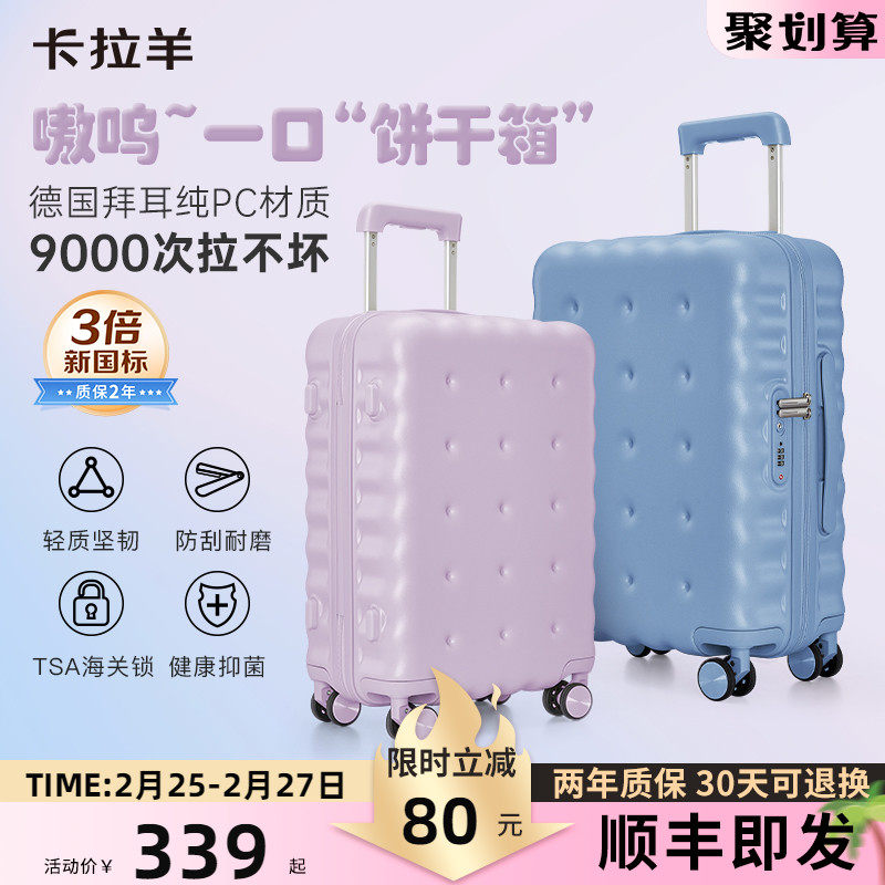 卡拉羊饼干箱行李箱轻便登机箱男防刮托运旅行箱学生拉杆箱女耐磨