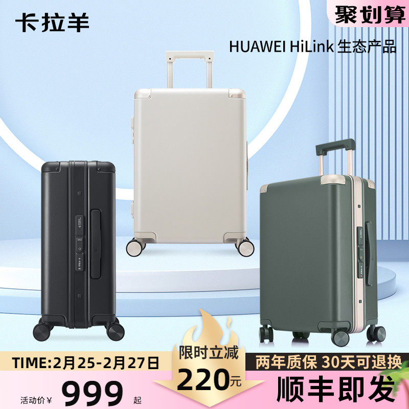 卡拉羊智能行李箱拉杆箱女20寸铝框登机箱24寸旅行箱大容量皮箱男
