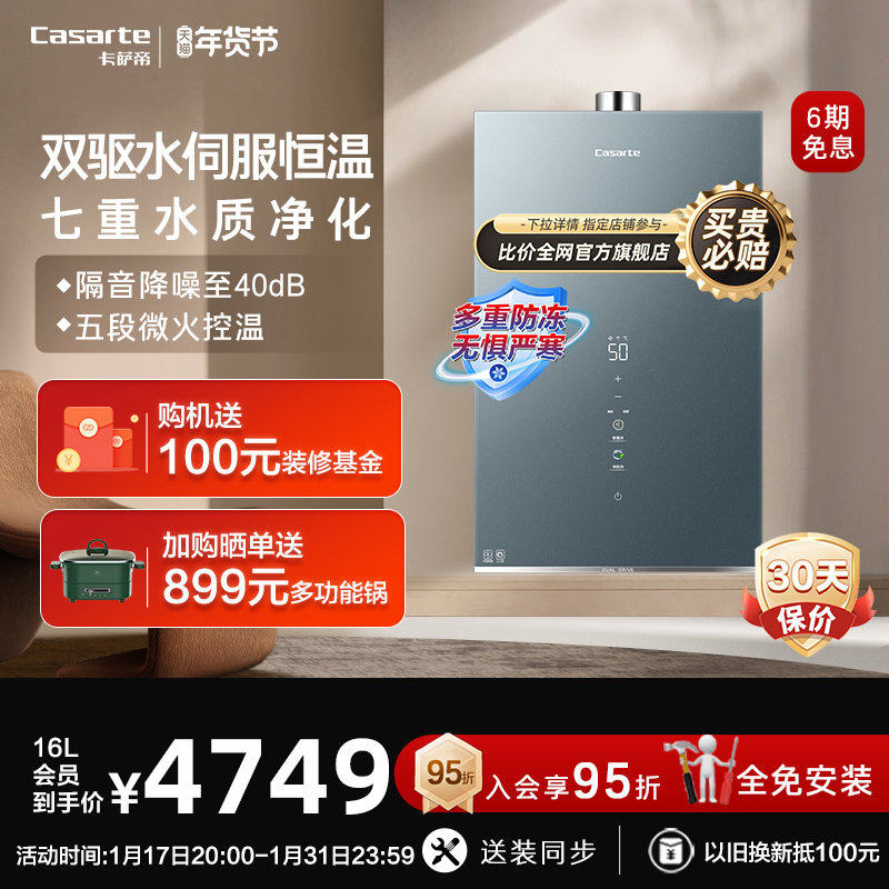 [双驱水伺服]卡萨帝燃气热水器CWV3恒温洗澡家用天然气静音16升