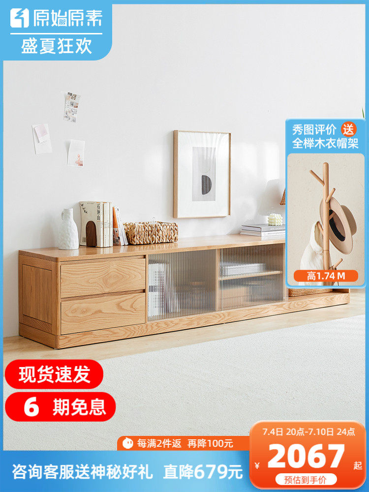 原始原素全实木电视柜北欧简约现代客厅家具橡木落地收纳储物地柜
