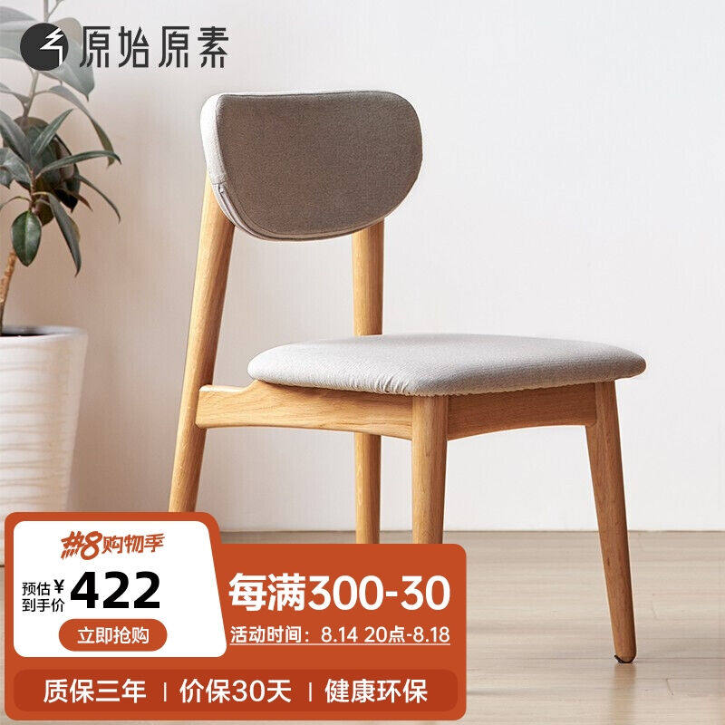 原始原素实木餐椅北欧简约现代家用椅子餐厅家具饭桌餐椅橡木款JD