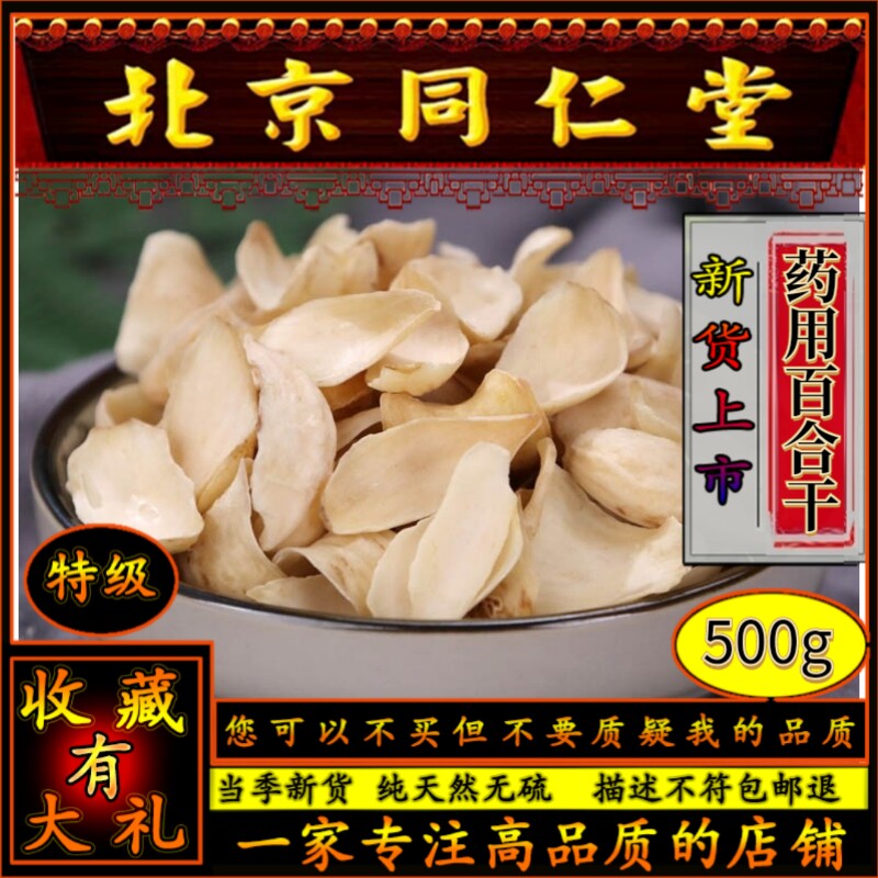 同仁堂特级无硫药用百合干食用500g包邮中药材干货龙山百合干泡茶