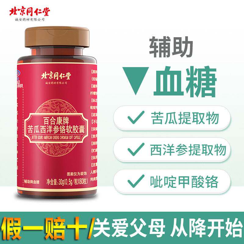北京同仁堂苦瓜干西洋参铬软胶囊百合康牌片降辅助血糖茶保健食品