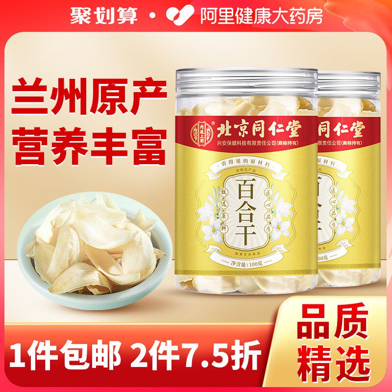 北京同仁堂百合干泡水喝干货药特非级用百合泡茶中草药材搭配莲子