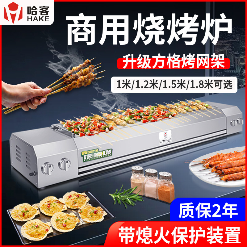 哈客无烟烧烤炉商用煤气烤鱼烤面筋烤架户外摆摊烤肉串带熄火保护