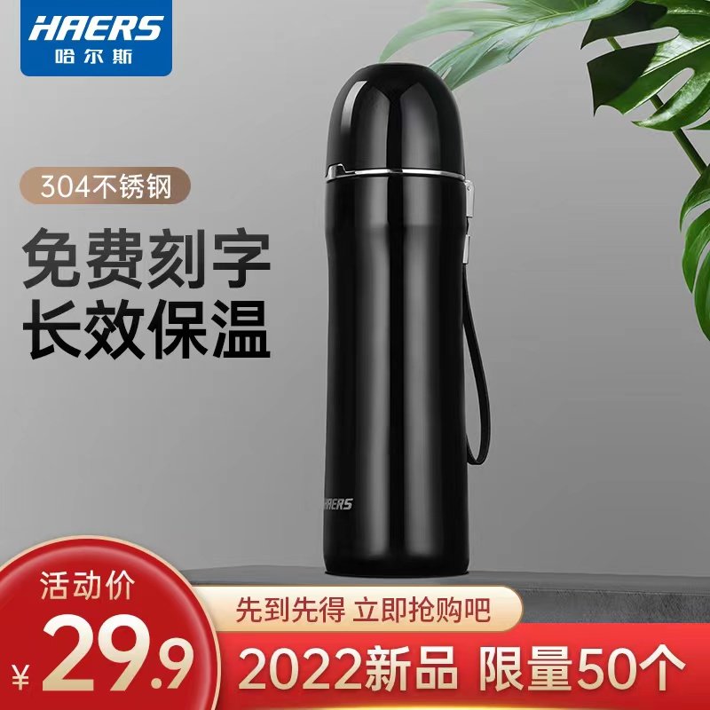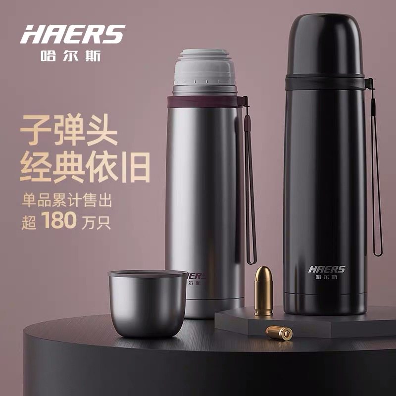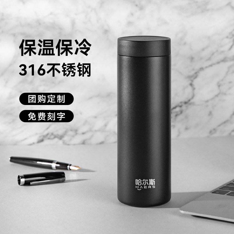 HAERS/哈尔斯2023年新款保温杯男女316不锈钢水杯子茶杯刻字耐磨