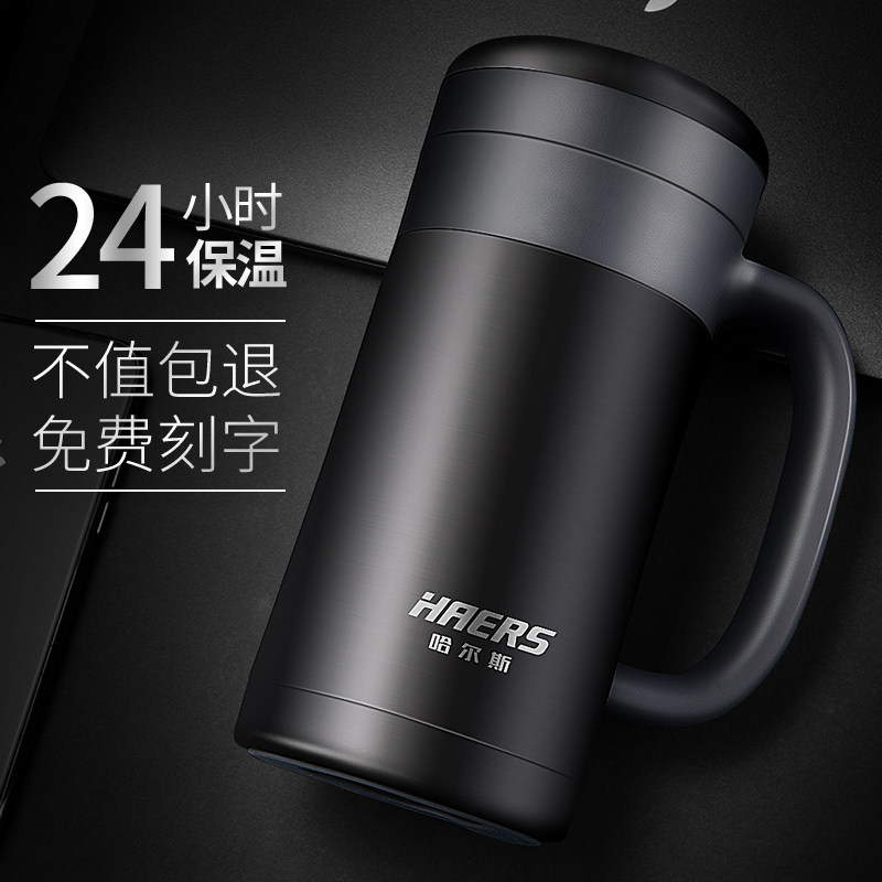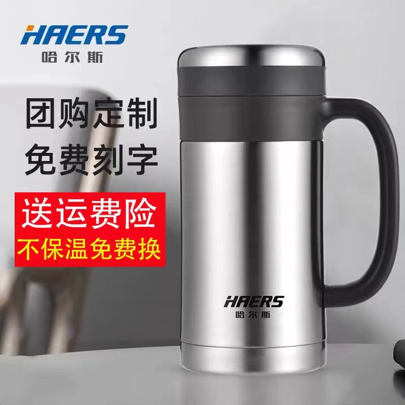 哈尔斯保温杯带手柄男士办公室不锈钢家用泡茶大容量正品水杯刻字
