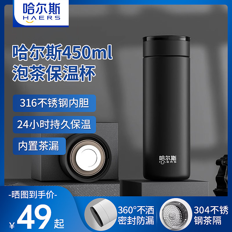 哈尔斯保温杯2023新款男士316不锈钢泡茶水杯定制官方旗舰店正品