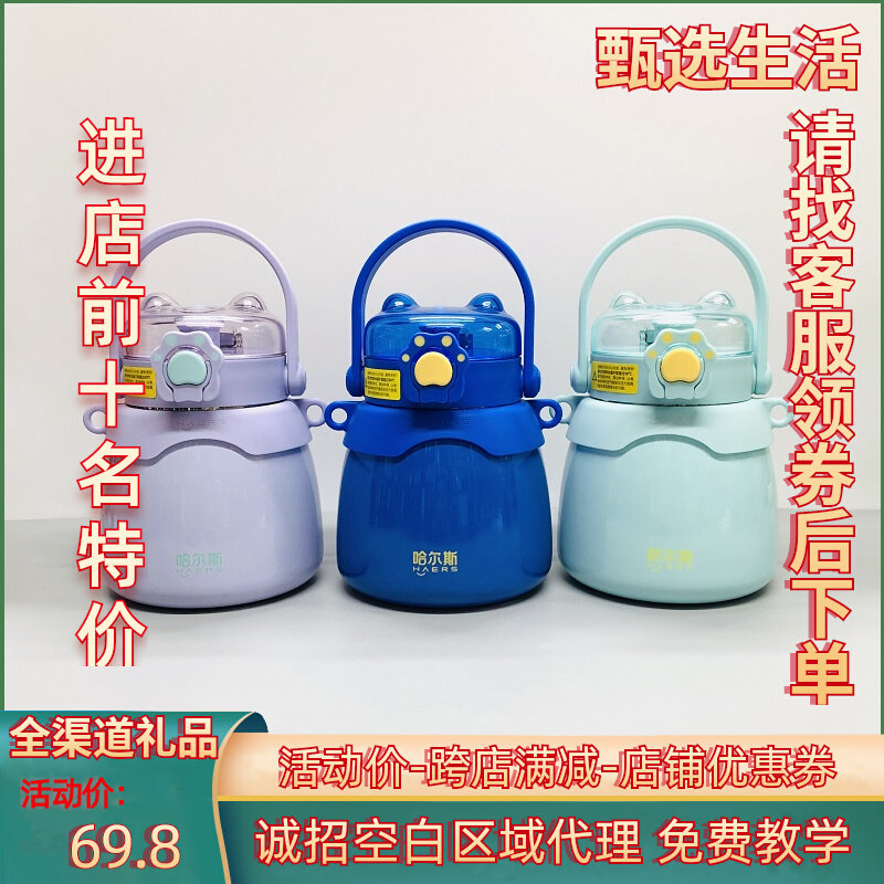 哈尔斯保温杯不锈钢少女学生高颜值小可爱便携水杯儿童带吸管杯子