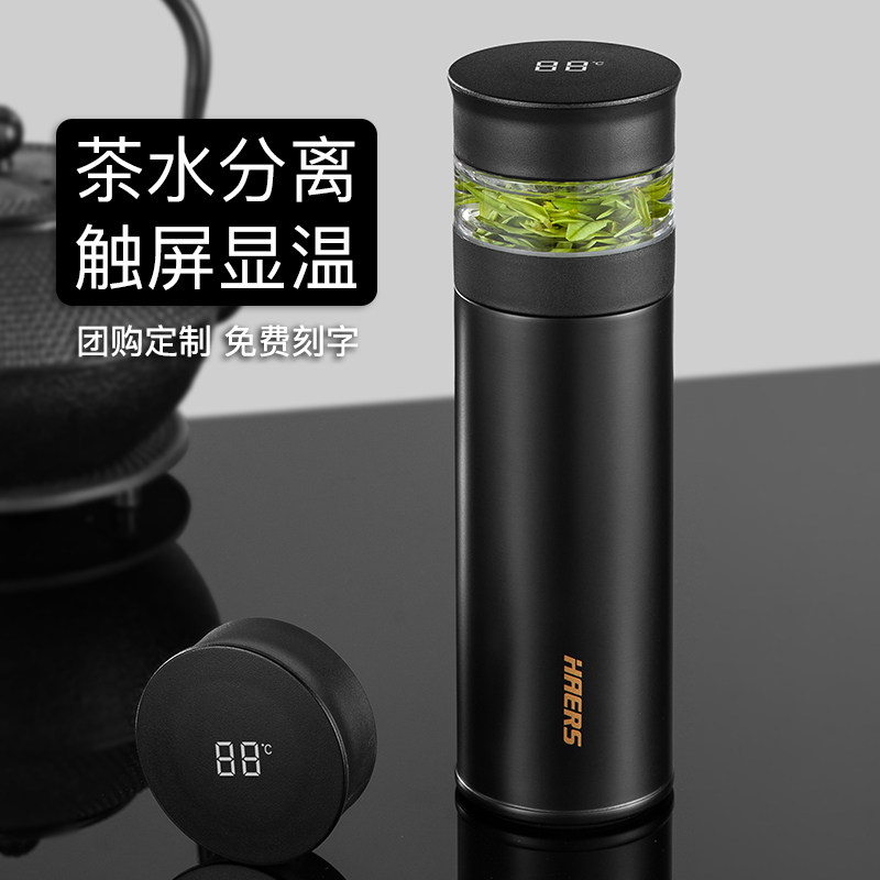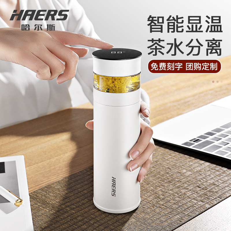 哈尔斯保温杯女士茶水分离智能不锈钢刻字礼物定制泡茶水杯新款男