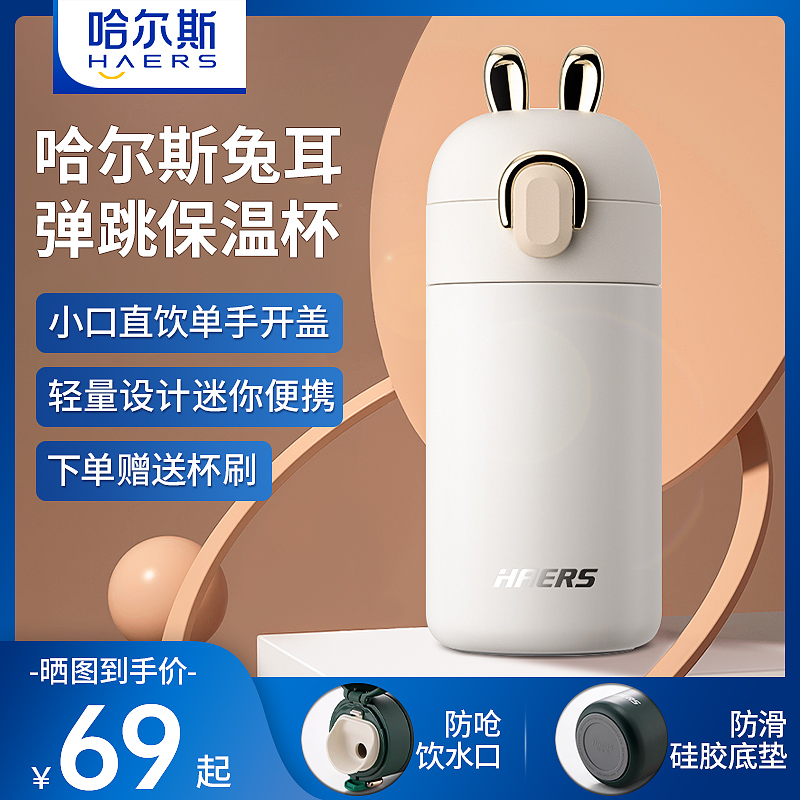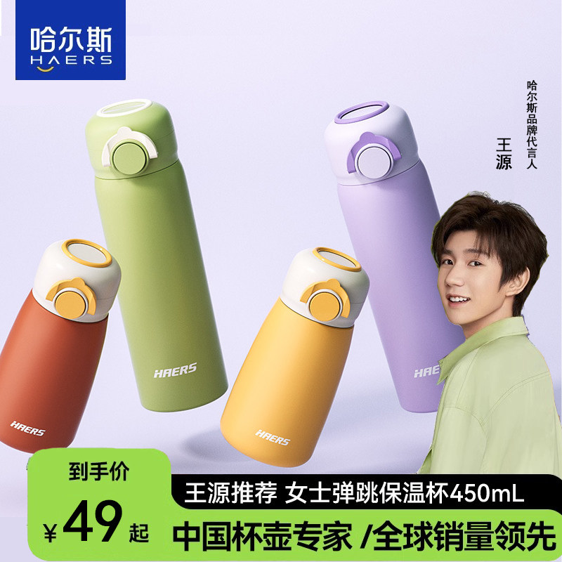 哈尔斯保温杯304不锈钢女士学生便携小巧弹跳盖高颜值水杯子定制
