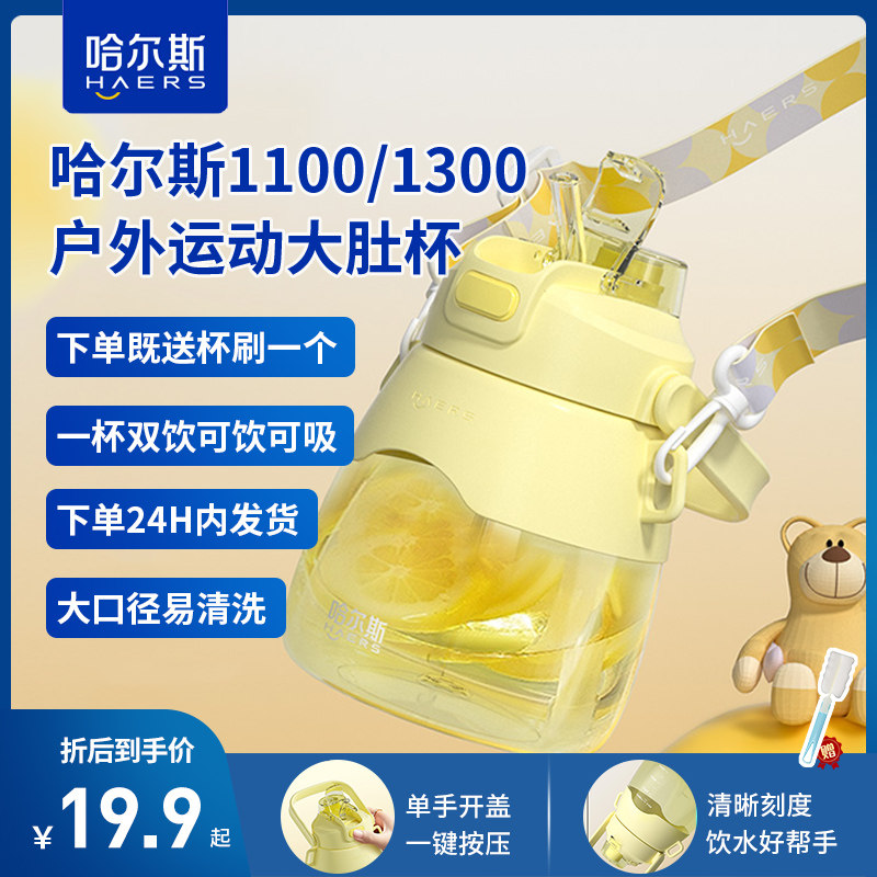 哈尔斯运动水杯大容量男女生夏季便携健身学生塑料水杯耐高温防摔