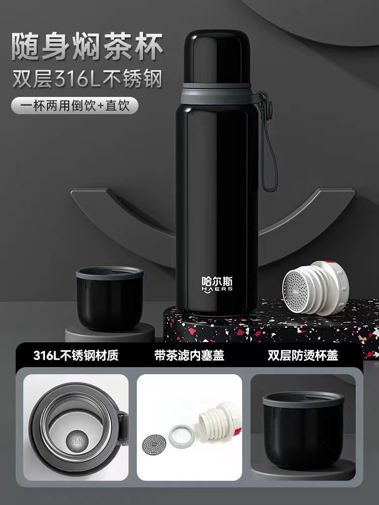 哈尔斯保温瓶闷茶杯316不锈钢大容量老白茶焖泡杯男款水杯子刻字l