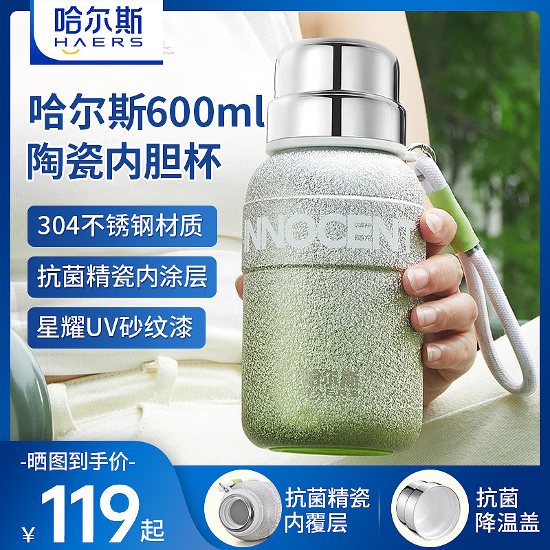 哈尔斯保温杯女学生高颜值ins风2023新款陶瓷内胆水杯子