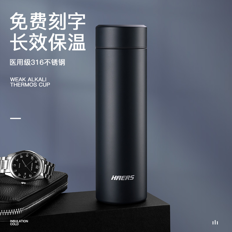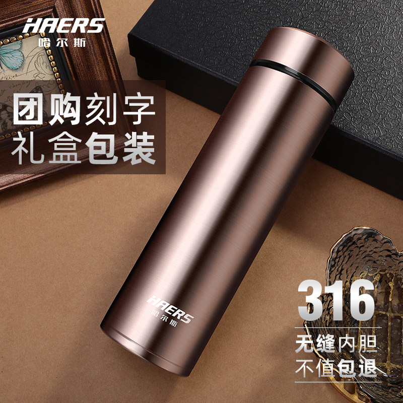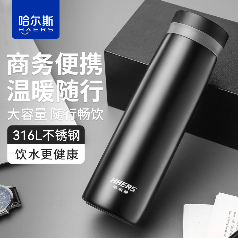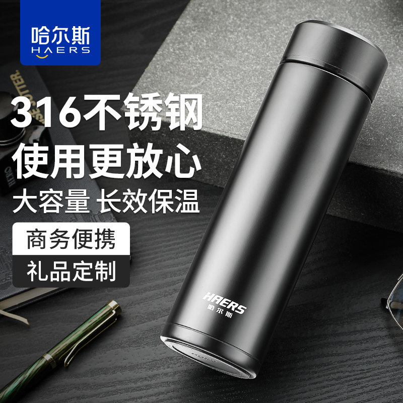 haers哈尔斯保温杯男士316不锈钢水杯女简约便携泡茶杯定制刻字