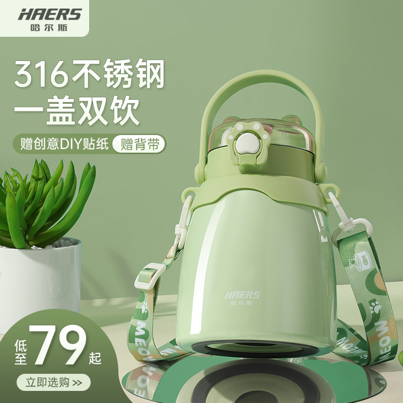 哈尔斯保温杯女大容量316不锈钢吸管水杯男学生儿童运动保温水壶