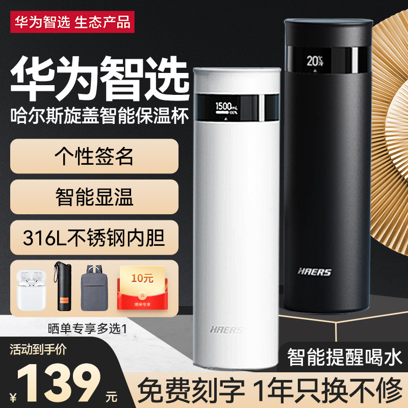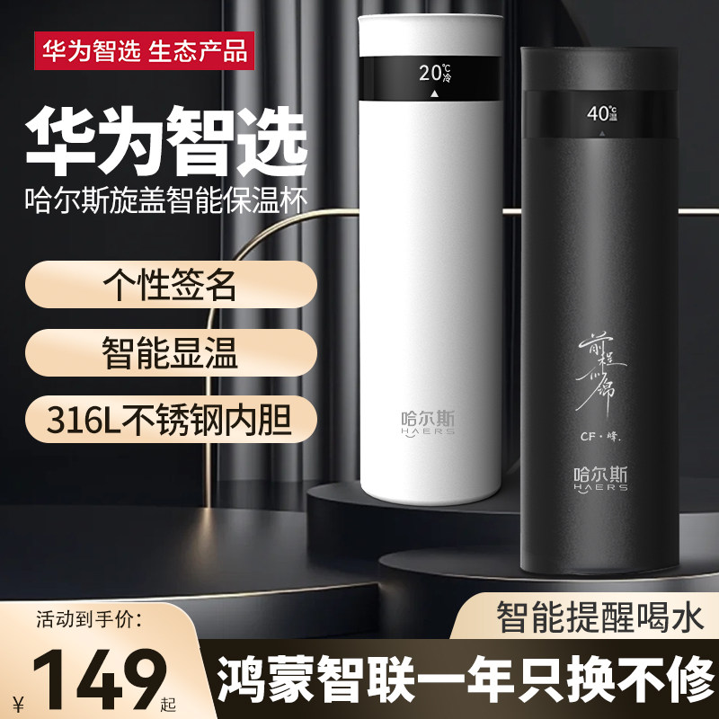 华为智选哈尔斯智能保温杯男女高档水杯316不锈钢定制泡茶高颜值