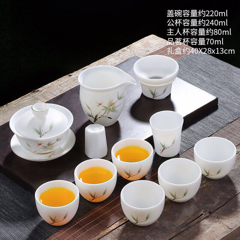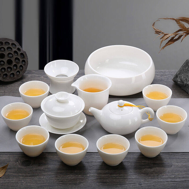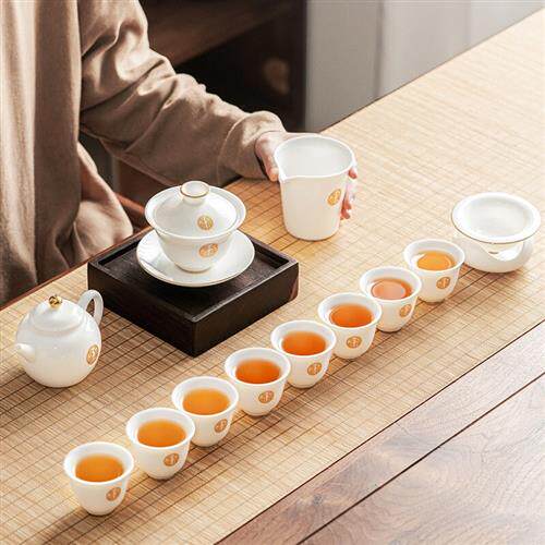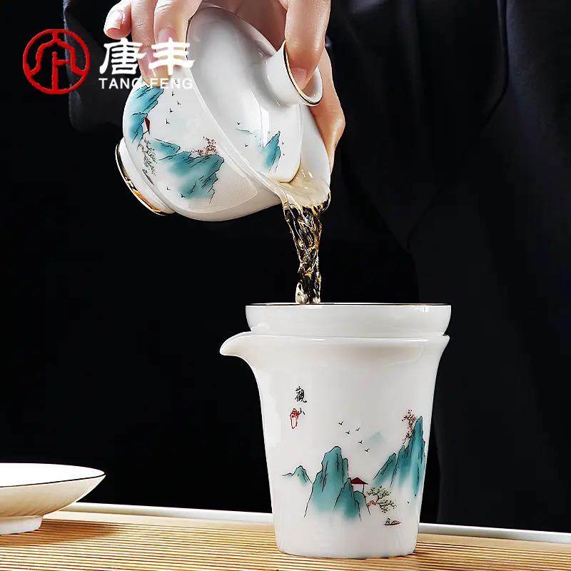 唐丰羊脂玉功夫茶具套装家用客厅泡茶简约办公室会客德化白瓷盖碗