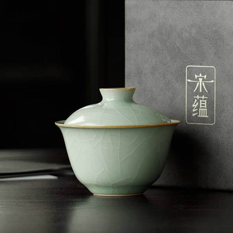 唐丰宋蕴李桂莲天青色汝窑盖碗功夫茶具二才泡茶碗杯冰裂陶瓷开片