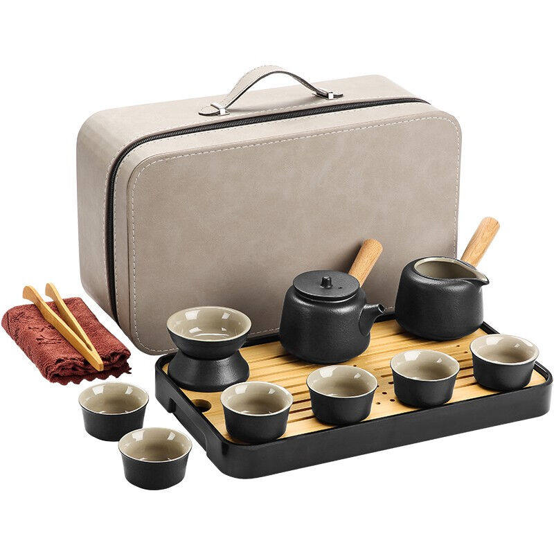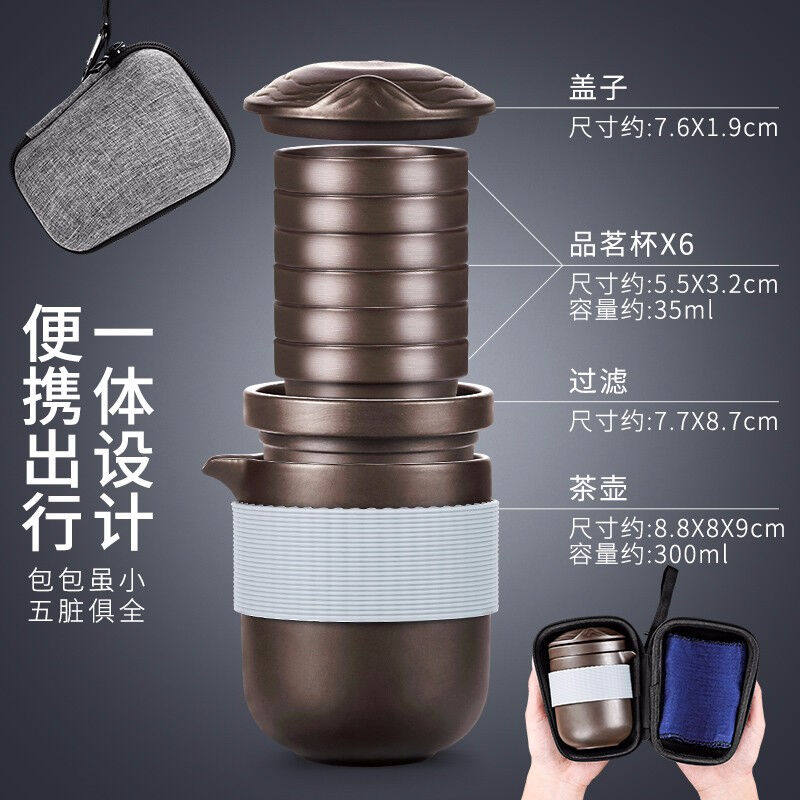 唐丰旅行茶具一壶六杯户外车载陶瓷功夫泡茶器便携收纳包快客杯猫