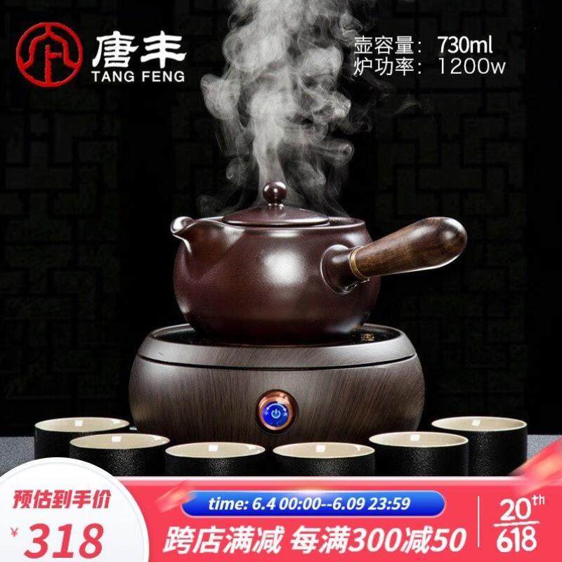 唐丰(TANGFENG)陶瓷茶壶煮茶器黑檀侧把单壶功夫茶具电陶炉普洱
