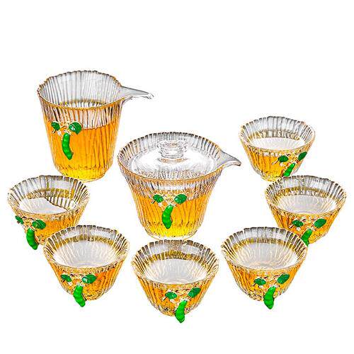 唐丰玻璃茶具套装透明盖碗加厚公道杯家用功夫泡茶器锤纹鎏银茶杯
