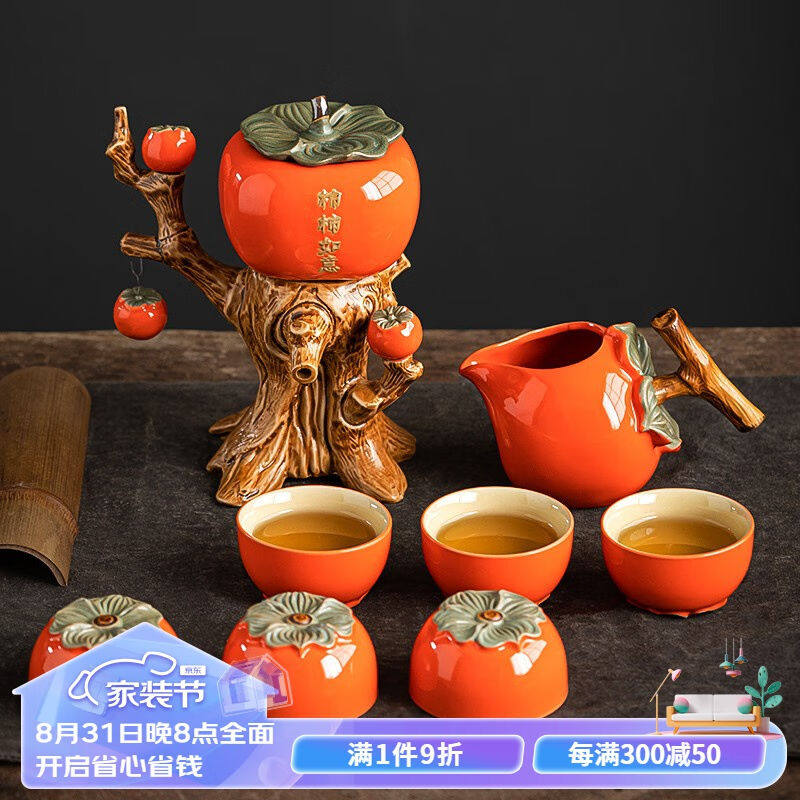 唐丰柿柿如意懒人泡茶器网红自动茶具套装家用轻奢高档茶壶茶杯礼