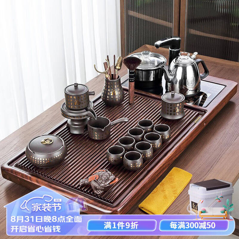 唐丰紫砂茶具柯木整套功夫茶具套装带茶盘三合一抽水电热炉秀典茶