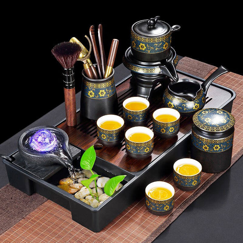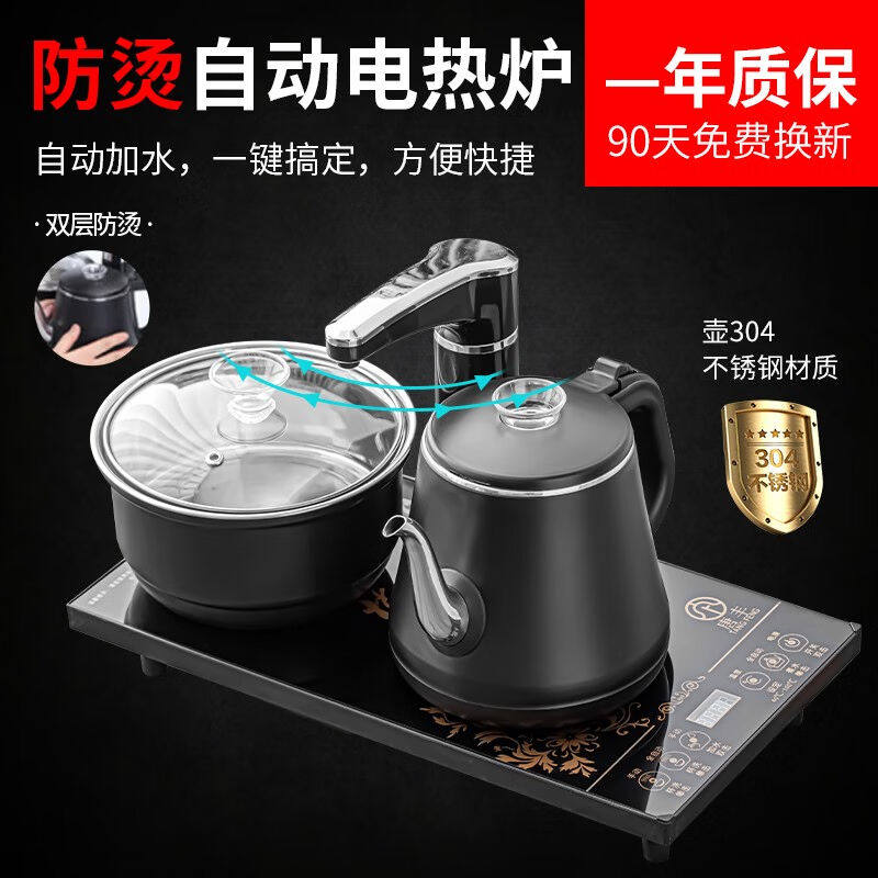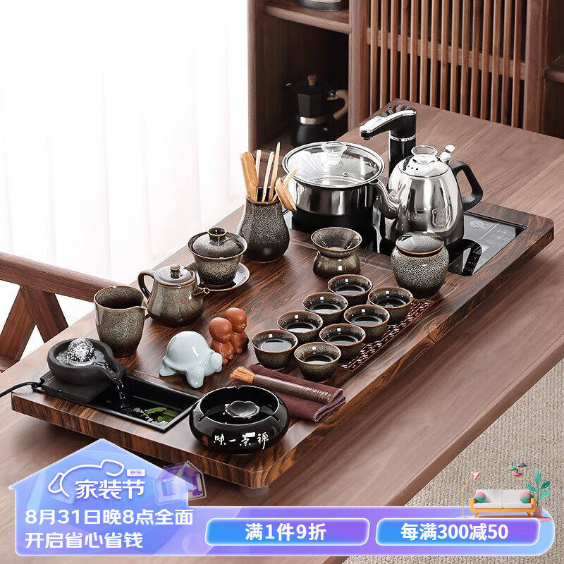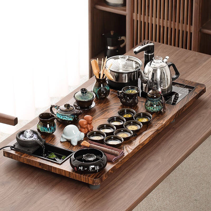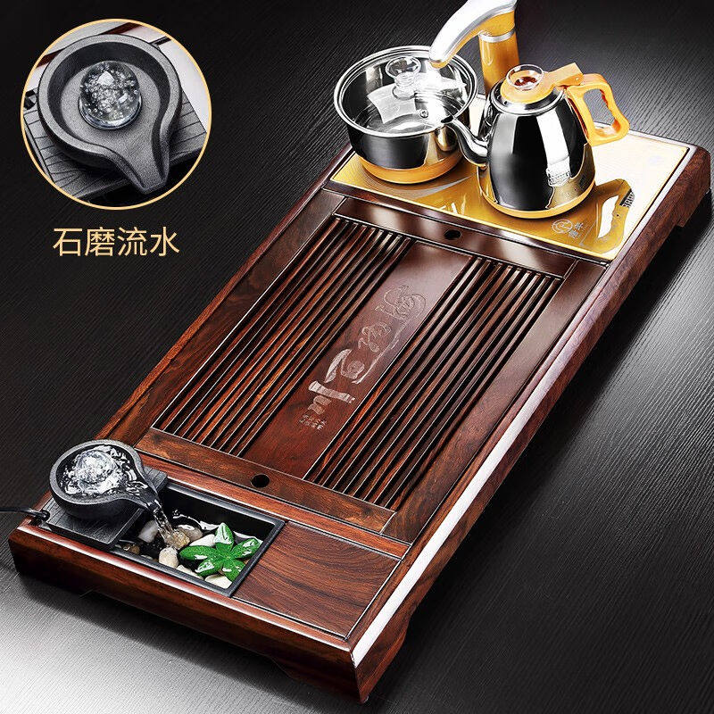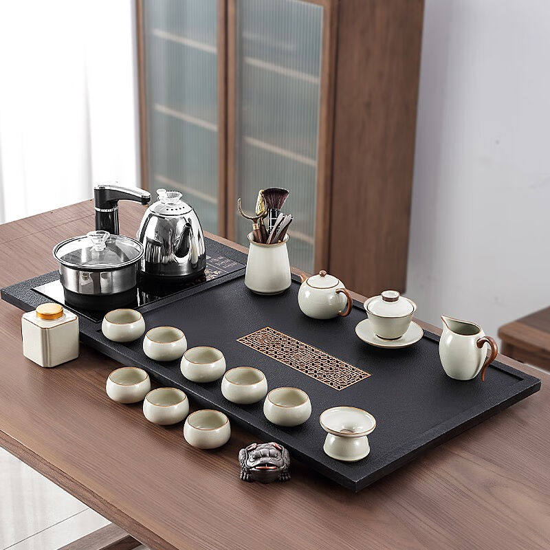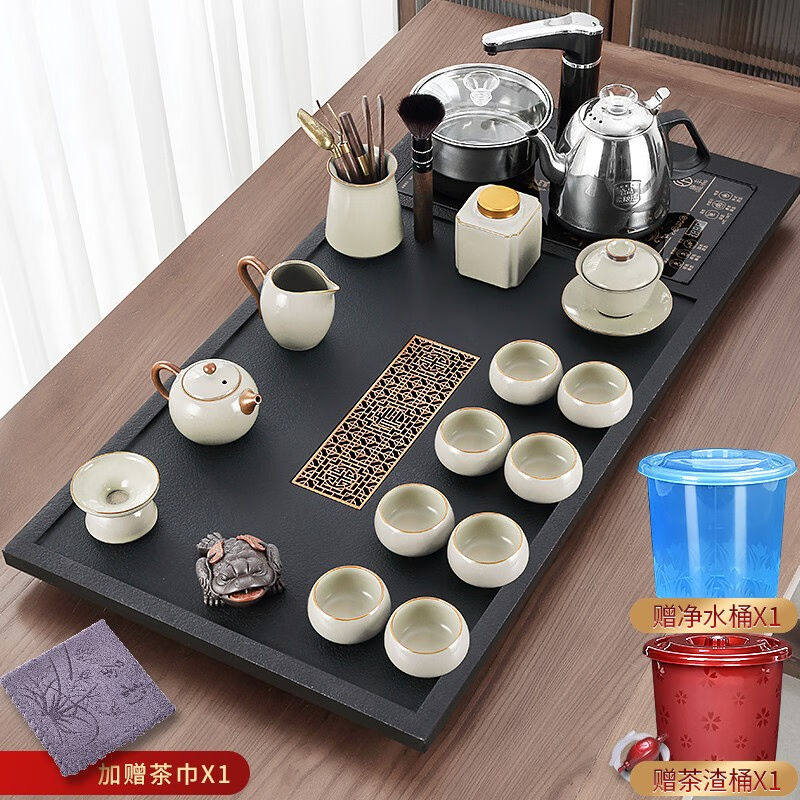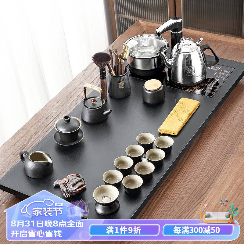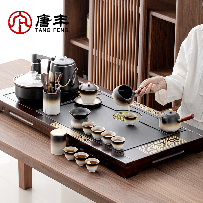 唐丰茶具套装全自动烧水壶一体仿石漆茶盘茶台家用客厅轻奢高档黑